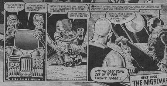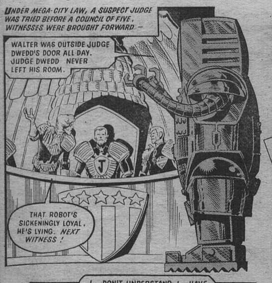 Walter did his best to prove Dredd's innocence but a robot's word carries little weight in Mega City 1.