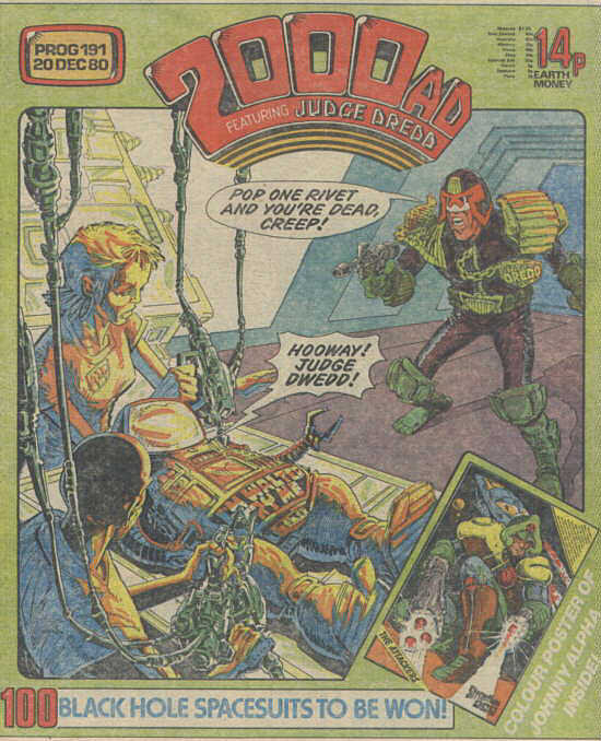 Which brings us back to the scene on the cover as Dredd arrived in the nick of time. As soon as the thieves were taken away Dredd asked Walter the million cred question.